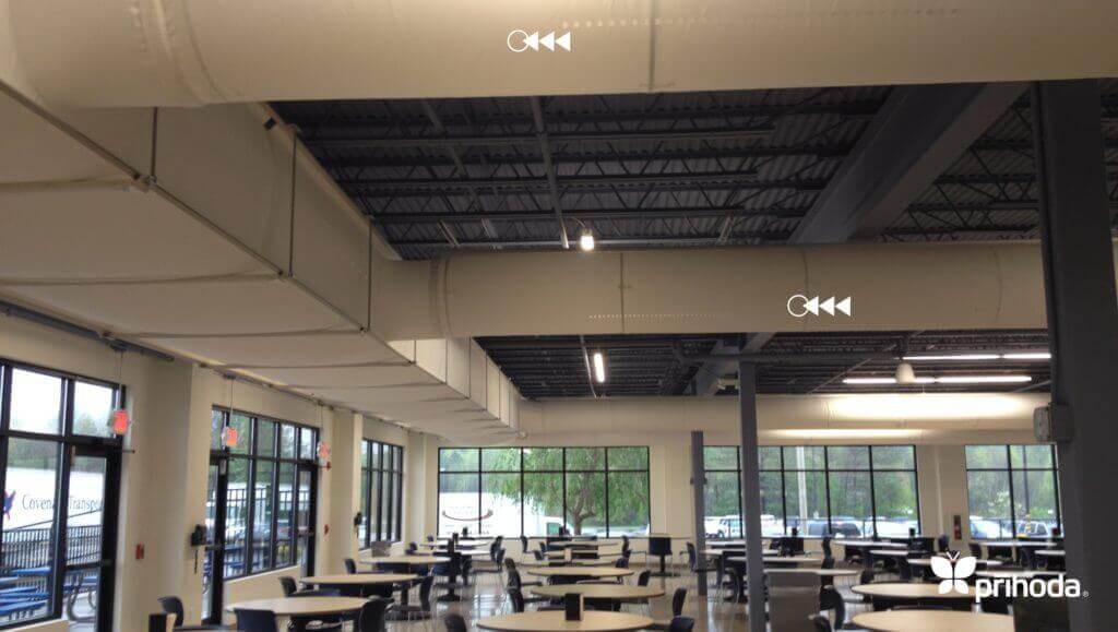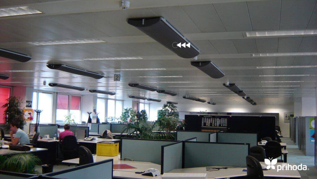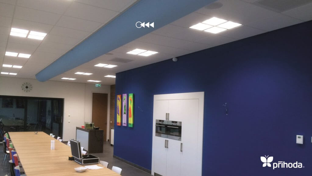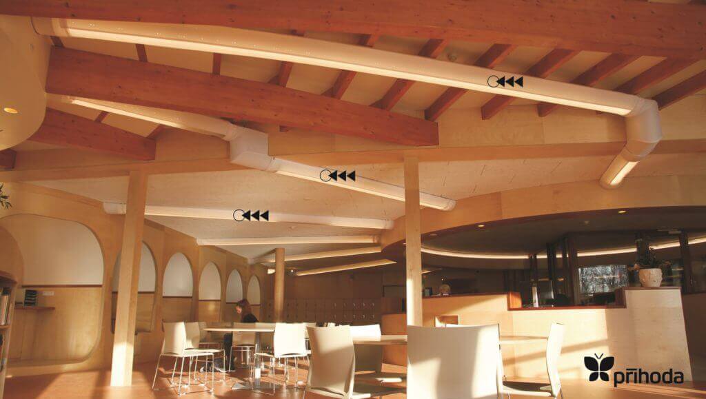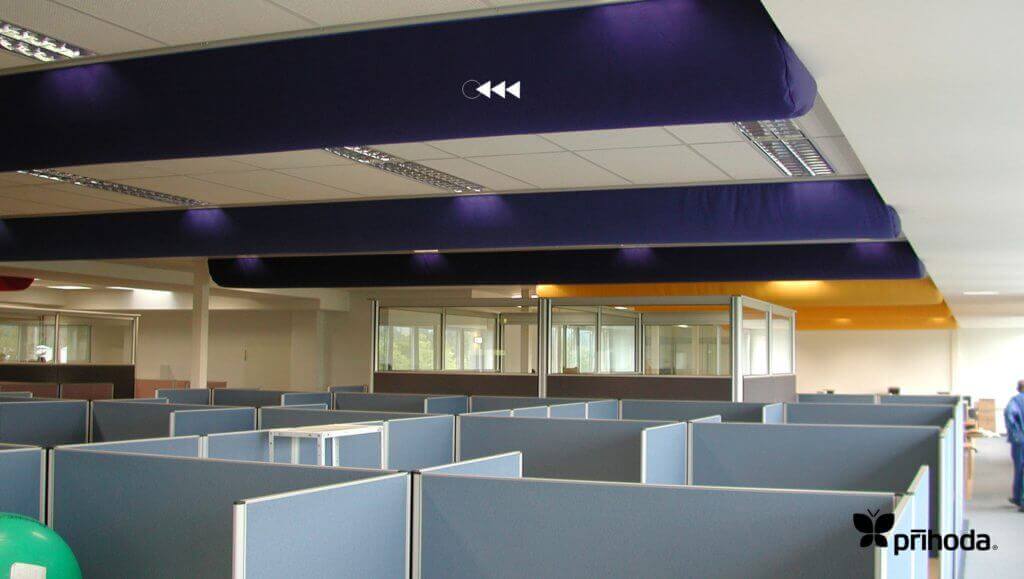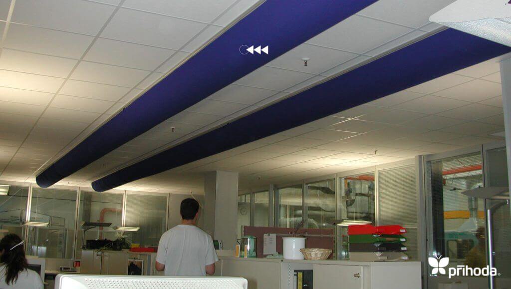 Higher aesthetic demands can be satisfied by the multiple colour and shapes available with Prihoda Fabric Ducting air distribution. Correctly manufactured and perfectly installed fabric diffusers become an elegant part of an interior. Air diffusion through Fabric Ducting provides similar results to chilled beams or perforated ceilings, however although the performance is similar, Fabric Ducting is available at a much lower capital cost. Unlike the traditional diffusers, embedded in soffits, our broadly diffused solutions do not cause any local heat discomfort. Experience has demonstrated that employees in such equally distributed and cooled offices are significantly more comfortable.