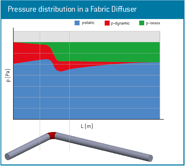 The pressure distribution along Fabric Diffusers is different from traditional sheet metal ducting because with declining