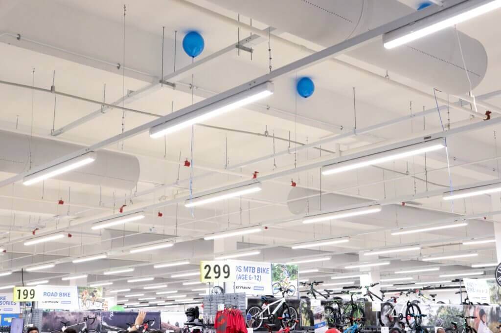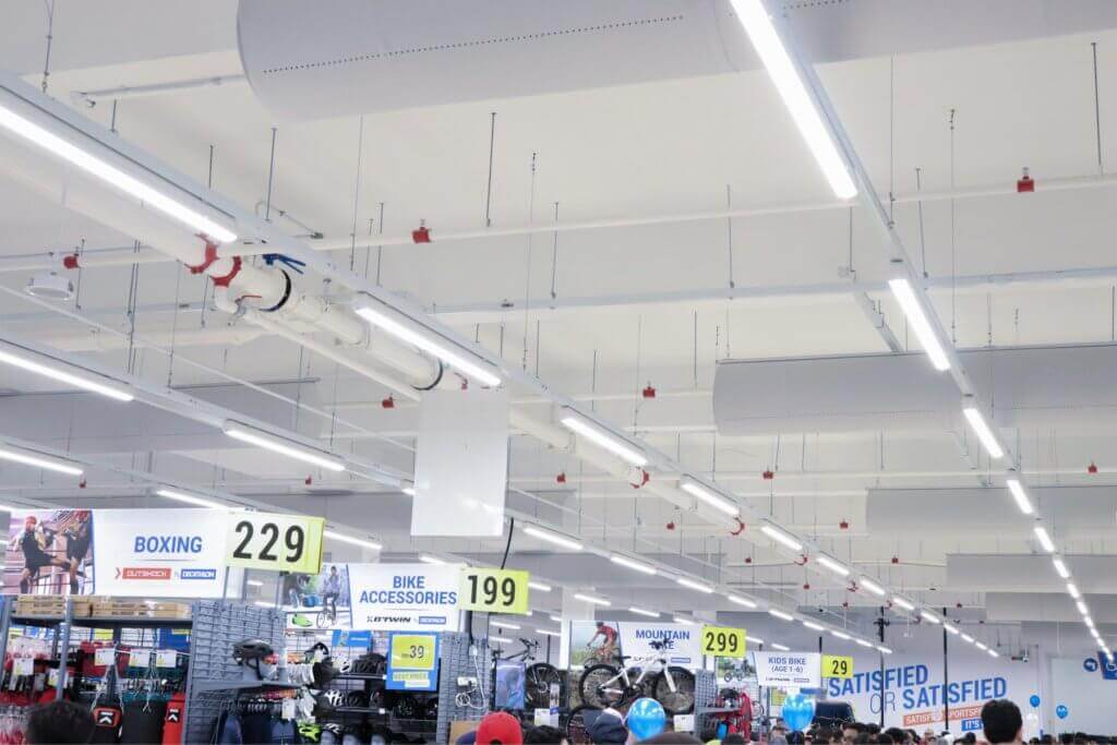 Decathlon Shah Alam has two floors, 10,000 sqm of sales area, 230,000 exclusive products for 60 different sports and 656 m of Prihoda diffusers. It is the biggest Decathlon store in Southeast Asia. The customer required very quick delivery in order not to delay the grand opening ceremony. Efficient cooperation between us and Prihoda Malaysia ensured diffusers were delivered and installed on time. The customer’s expectations were exceeded, and proper functionality, quick delivery and attractive appearance were the genuine deal. Thanks to interior tyres , enlarged strips and installed profiles, the diffusers look great even without air supply.
